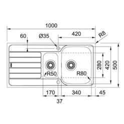 Franke Spark 1 Bowl Inset Kitchen Sink Reversible SKX 611-86 – Stainless Steel – 101.0489.946