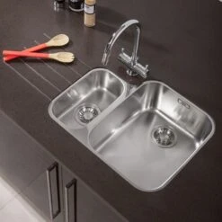The Franke Ariane ARX 160-35-17 1.5 bowl kitchen sink adds a stylish solution to any kitchen design, due to its elegance with real practical benefits. Complemented by its modern and minimalistic undermount design with hygienic overflow, it carries a fabulous finish which blends well with any kitchen setting, be it modern or classic.