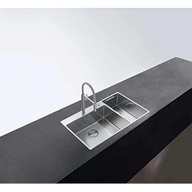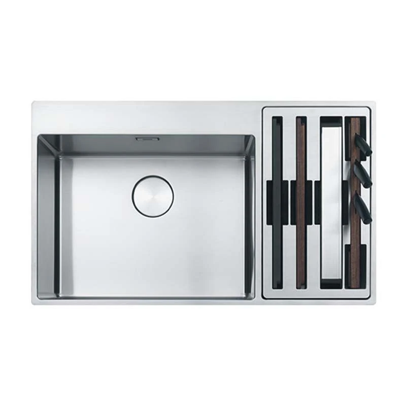 Manufactured from high quality and durable stainless steel, the double bowl provide for an optimum kitchen workflow because everything is within reach. They also offer complete cleanliness, the bowls are easy to clean and all removable compartments can simply be taken out and washed ready to use again. During the day, the elegant accessories are easily accessible for food preparation because they are completely integrated in the main bowl. At night, the accessories can be safely stored in the compartment bowl and will dry entirely overnight. Designed to fit a 900mm cabinet, this sink is fitted with sound deadening pads and backed by a 50 years guarantee for a peace of mind.
