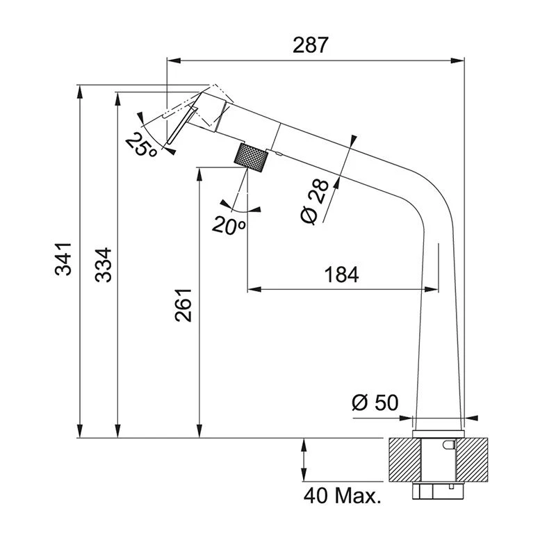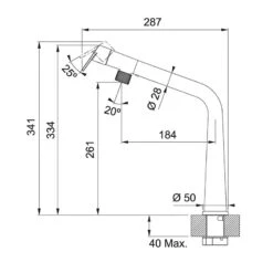 - Height to end of spout: 261mm