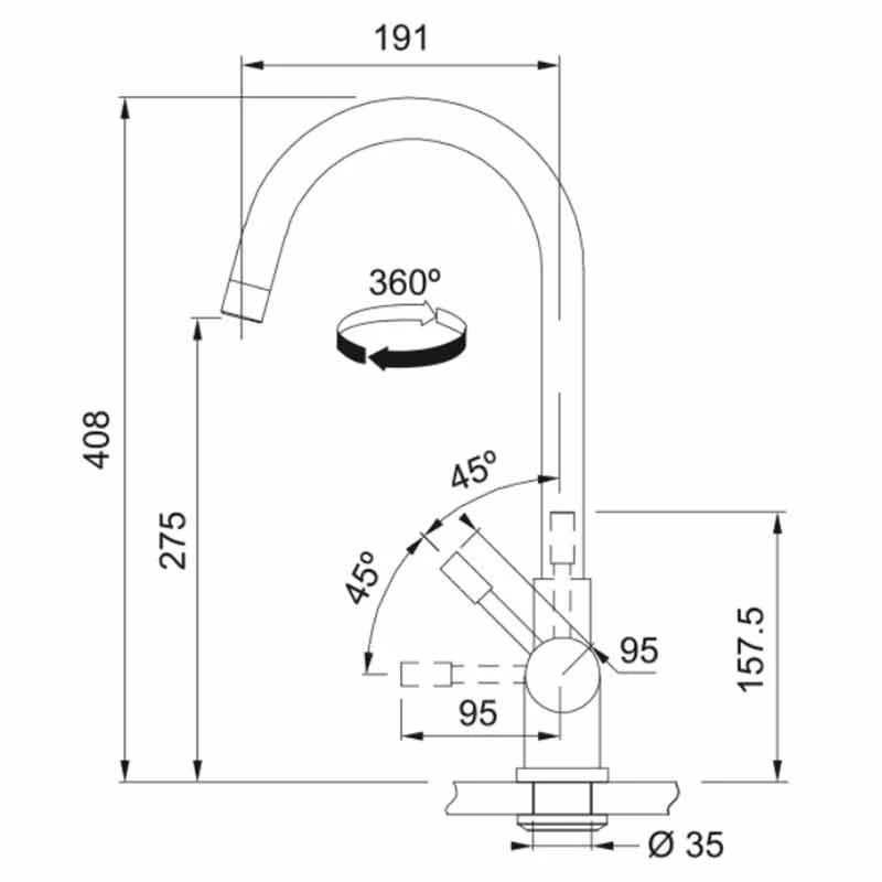 - Spout reach: 191mm