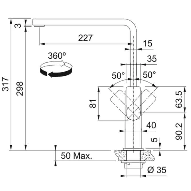 The Franke Mythos Single Lever Tap comes in a industrial black finish and swivel spout design. This stunning tap has an overall height of 317mm and features a stylish side lever. This product is also suitable for low pressure systems and combines a timeless, solid design and high-end finish with excellent performance and durability.