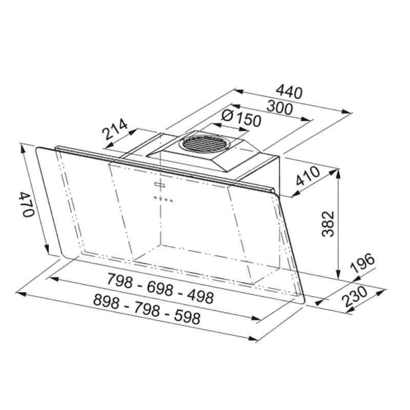 - Recommended positioning height above hob: 450 mm