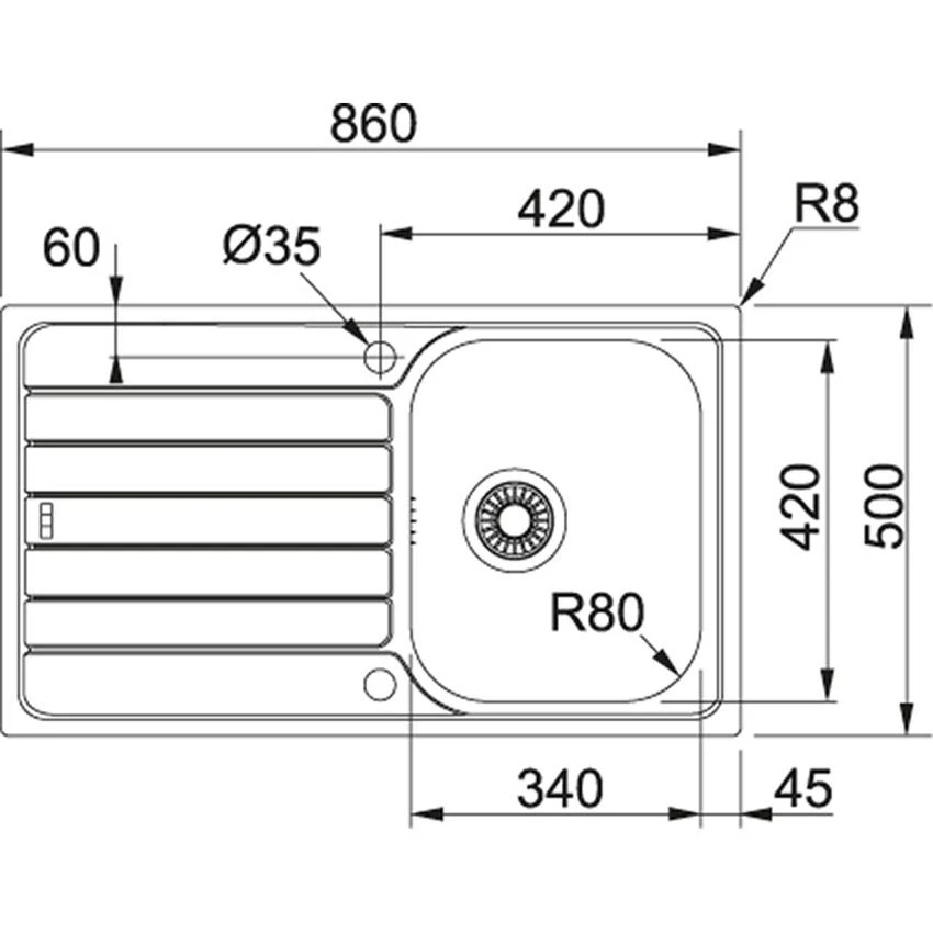 Franke Spark 1 Bowl Inset Kitchen Sink Reversible SKX 611-86 – Stainless Steel – 101.0489.946 Details