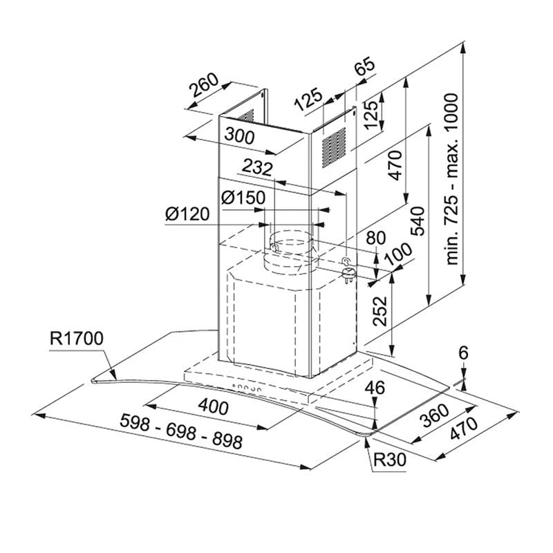 Franke T-Glass Curved 90cm Chimney Cooker Hood – Stainless Steel – FGC 925 XS NP – 325.0591.036 Details
